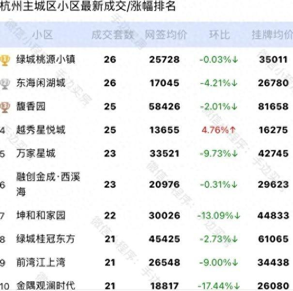 杭州二手房成交量“7字头”, TOP10小区网签价九成下跌!